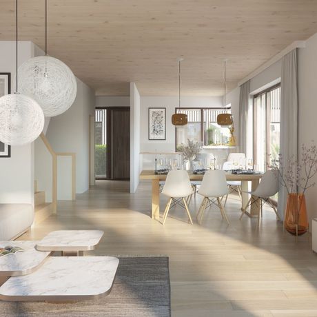 Ein angenehmes Raumklima, eine hervorragende Ökobilanz und die optisch gelungene Holzhybridbauweise stehen für die nachhaltige Bauweise.